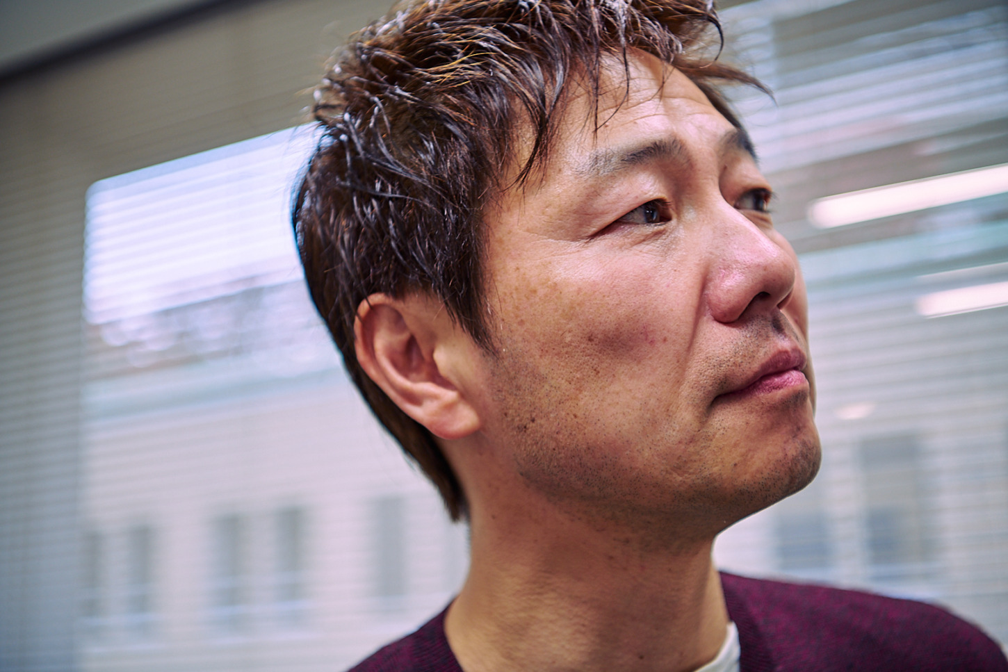 これから仕事の大事なミーティングとのことで前髪を上げてみました。